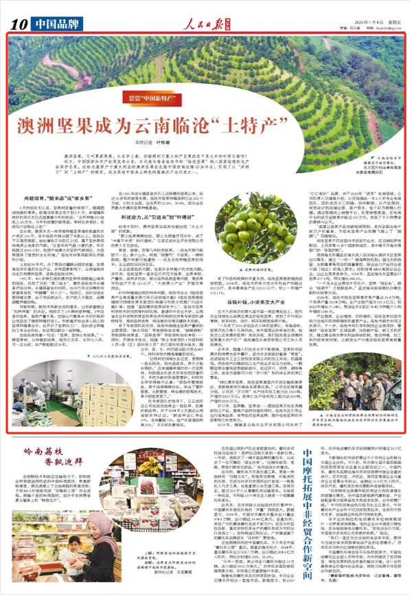 《人民日?qǐng)?bào)海外版》點(diǎn)贊澳洲堅(jiān)果成為云南臨滄“土特產(chǎn)”