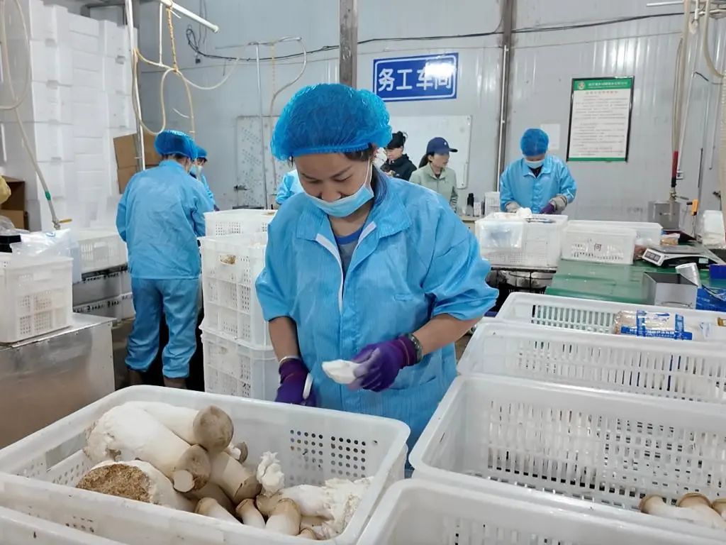 蓬勃發(fā)展的食用菌產(chǎn)業(yè)還催生出助農(nóng)增收的聯(lián)農(nóng)帶農(nóng)機(jī)制。陸良爨鄉(xiāng)綠圓菇業(yè)有限公司通過流轉(zhuǎn)土地,帶動(dòng)周邊600多戶農(nóng)戶種植食用菌,每戶年均增收1.5萬元。“每個(gè)月打包分揀食用菌能有4000多元的收入,我很滿意。”家住工廠附近的農(nóng)戶朱麗仙說,除了土地租金,周圍農(nóng)戶還可以到車間里務(wù)工,實(shí)現(xiàn)家門口就業(yè)。