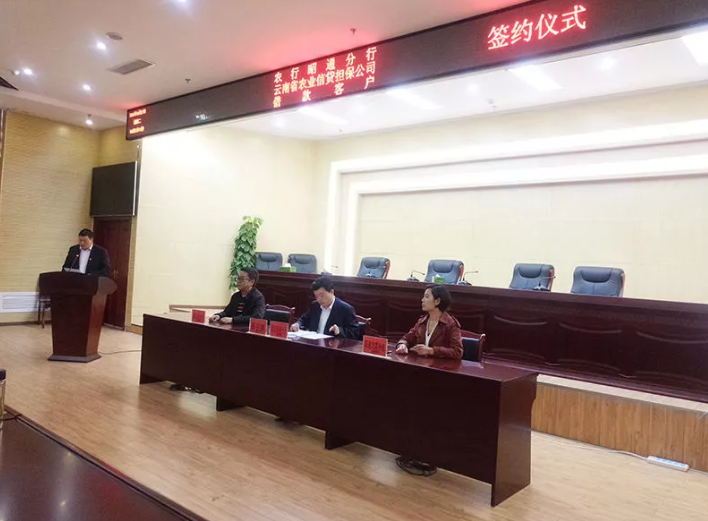 辦事處與昭通農(nóng)業(yè)銀行分行領(lǐng)導、各縣行長、信貸經(jīng)理及分行各部門在農(nóng)業(yè)銀行分行共同就前期審核通過借款客戶批量舉辦簽約儀式