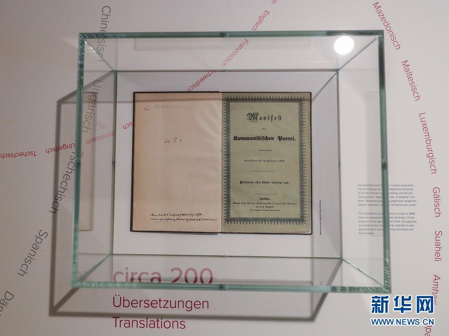 歷史長河奔流不息,真理之光穿越時空。1818年5月5日,德國小城特里爾,一代偉人馬克思誕生。200年后,世界東方。高擎馬克思主義的精神火炬,在習(xí)近平新時代中國特色社會主義思想指引下,中國共產(chǎn)黨正領(lǐng)導(dǎo)億萬人民書寫人類發(fā)展史上新的奇跡。這是2018年5月3日在德國特里爾馬克思故居紀(jì)念館內(nèi)拍攝的1848年出版的《共產(chǎn)黨宣言》第一版。