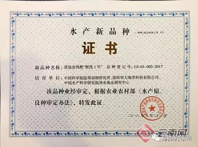 日前,由中國科學院昆明動物研究所聯(lián)合深圳華大海洋科技有限公司、中國水產科學研究院淡水漁業(yè)研究中心研發(fā)培育的新品種——滇池金線鲃“鲃優(yōu)1號”,正式獲農業(yè)農村部的官方認定,在水產種業(yè)發(fā)展論壇上獲得農業(yè)農村部頒發(fā)的水產新品種證書。這標志著滇池金線鲃有望實現(xiàn)規(guī)?;虡I(yè)養(yǎng)殖。