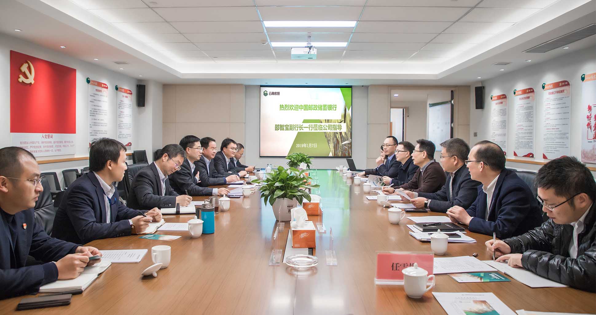 1月7日,中國郵政儲蓄銀行副行長邵智寶在郵儲銀行云南省分行唐華建行長陪同下到云南省農(nóng)擔(dān)公司調(diào)研,雙方就加強銀擔(dān)合作進行深入交流座談。
