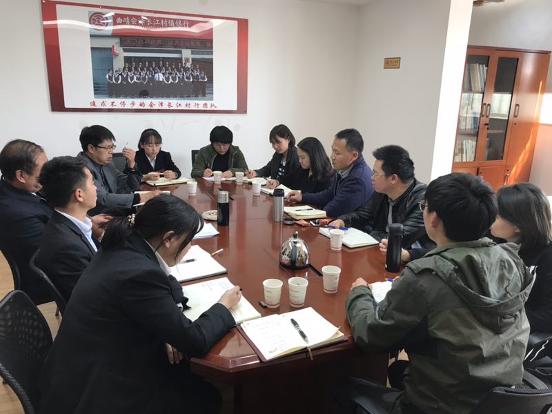 2019年2月12日下午,農(nóng)擔(dān)一部負(fù)責(zé)人劉川率曲靖辦事處全體員工赴曲靖會澤長江村鎮(zhèn)銀行交流學(xué)習(xí)。曲靖市會澤長江村鎮(zhèn)銀行副行長馬發(fā)寬、副行長左儒林、業(yè)務(wù)部負(fù)責(zé)人代穎、薛???、微貸中心負(fù)責(zé)人蔣紅浪、風(fēng)險管理部負(fù)責(zé)人饒文艷及辦公室負(fù)責(zé)人譚明秀等出席座談會。