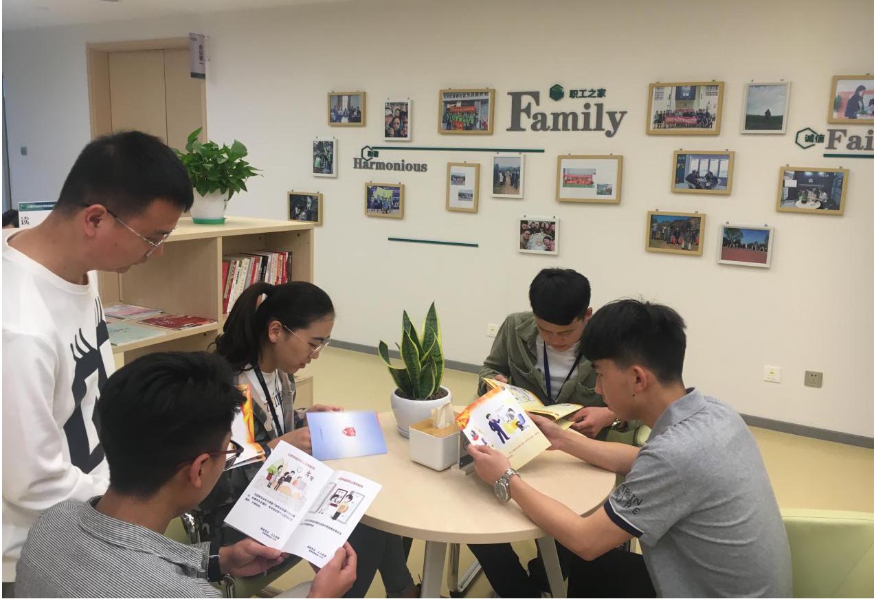 公司員工在讀書角認(rèn)真閱讀國(guó)家安全工作宣傳手冊(cè)