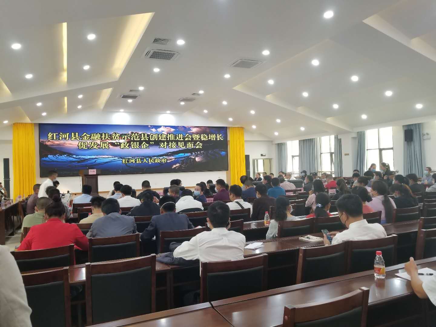2020年3月11日,紅河辦事處業(yè)務主管姚燕同志攜項目經(jīng)理范純、周金偉至紅河縣參加由紅河縣人民政府舉辦的紅河縣金融扶貧示范縣創(chuàng)建推薦會暨穩(wěn)增長促發(fā)展“政銀企”對接見面會。