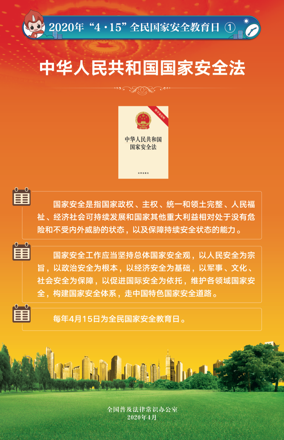 2015年7月1日全國人大常委會通過的《國家安全法》將每年4月15日定為全民國家安全教育日,2020年4月15日是我國第五個(gè)全民國家安全教育日。