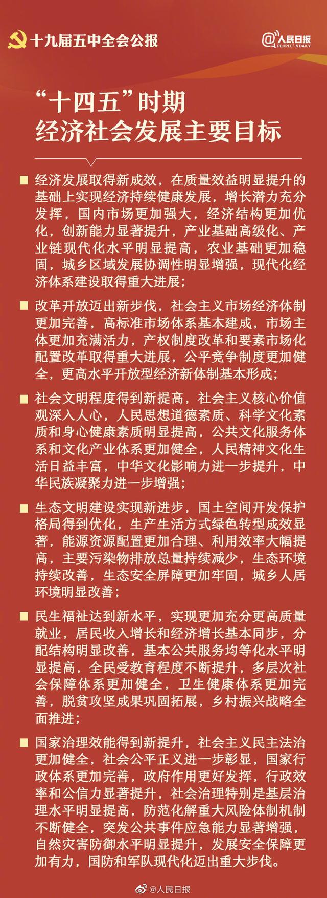 10月29日,中國共產(chǎn)黨第十九屆中央委員會第五次全體會議公報發(fā)布。全會高度評價決勝全面建成小康社會取得的決定性成就,提出了到二〇三五年基本實現(xiàn)社會主義現(xiàn)代化遠(yuǎn)景目標(biāo)以及“十四五”時期經(jīng)濟(jì)社會發(fā)展主要目標(biāo)。中國將如何實現(xiàn)這一宏偉藍(lán)圖,14個關(guān)鍵詞速讀五中全會公報。