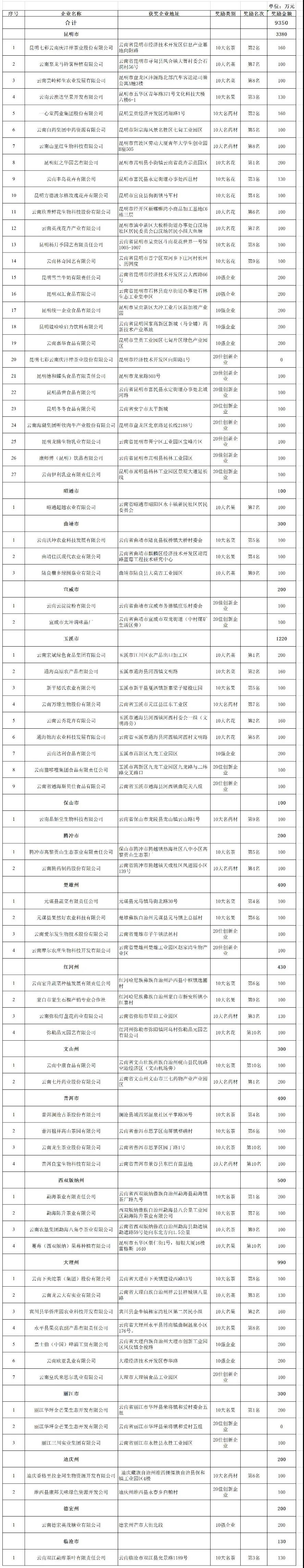點擊下載 2020年度云南省“10大名品”和綠色食品“10強企業(yè)”“20佳創(chuàng)新企業(yè)”獎勵資金情況表
