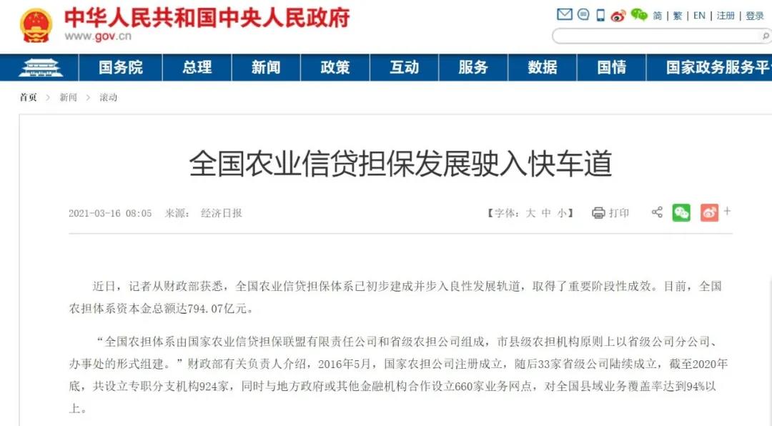 全國農(nóng)業(yè)信貸擔保發(fā)展駛?cè)肟燔嚨?/span>