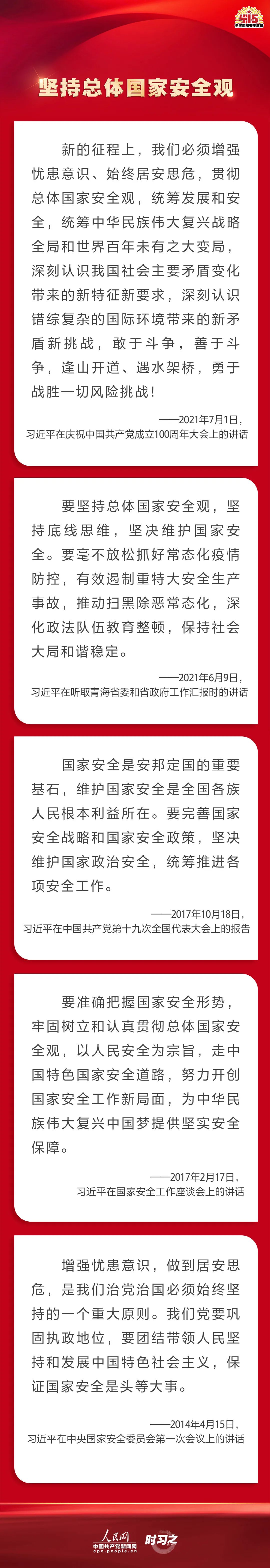備豫不虞,為國常道。實(shí)現(xiàn)中華民族偉大復(fù)興的中國夢,保證人民安居樂業(yè),國家安全是頭等大事。在第七個(gè)全民國家安全教育日到來之際,一起回顧習(xí)近平總書記在不同場合就維護(hù)、筑牢國家安全觀發(fā)表的一系列重要論述,增強(qiáng)維護(hù)國家安全的責(zé)任感、使命感、緊迫感。