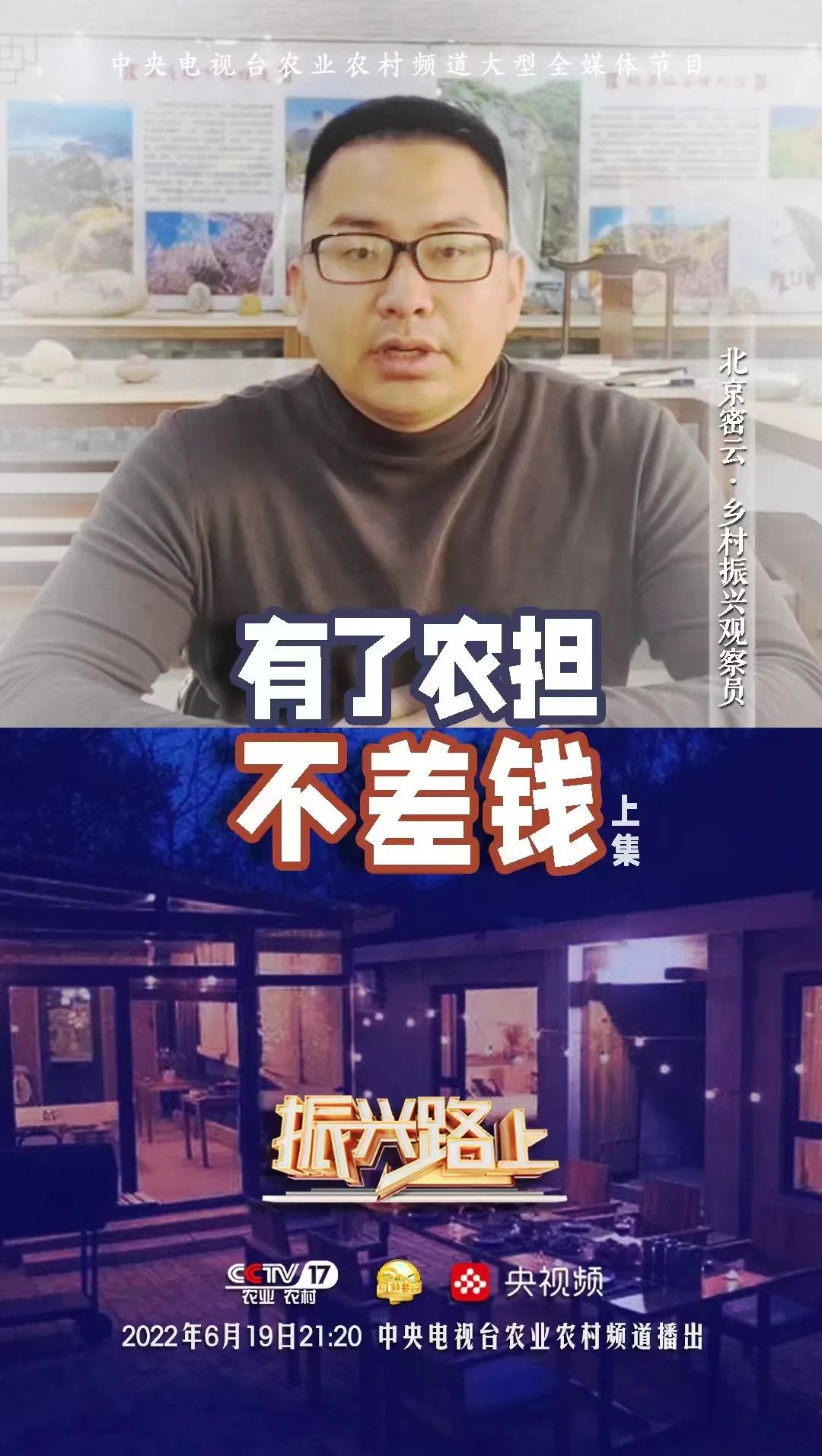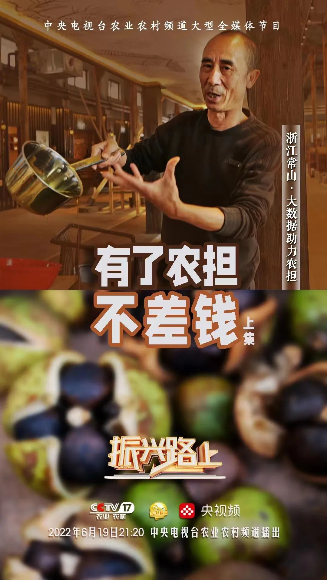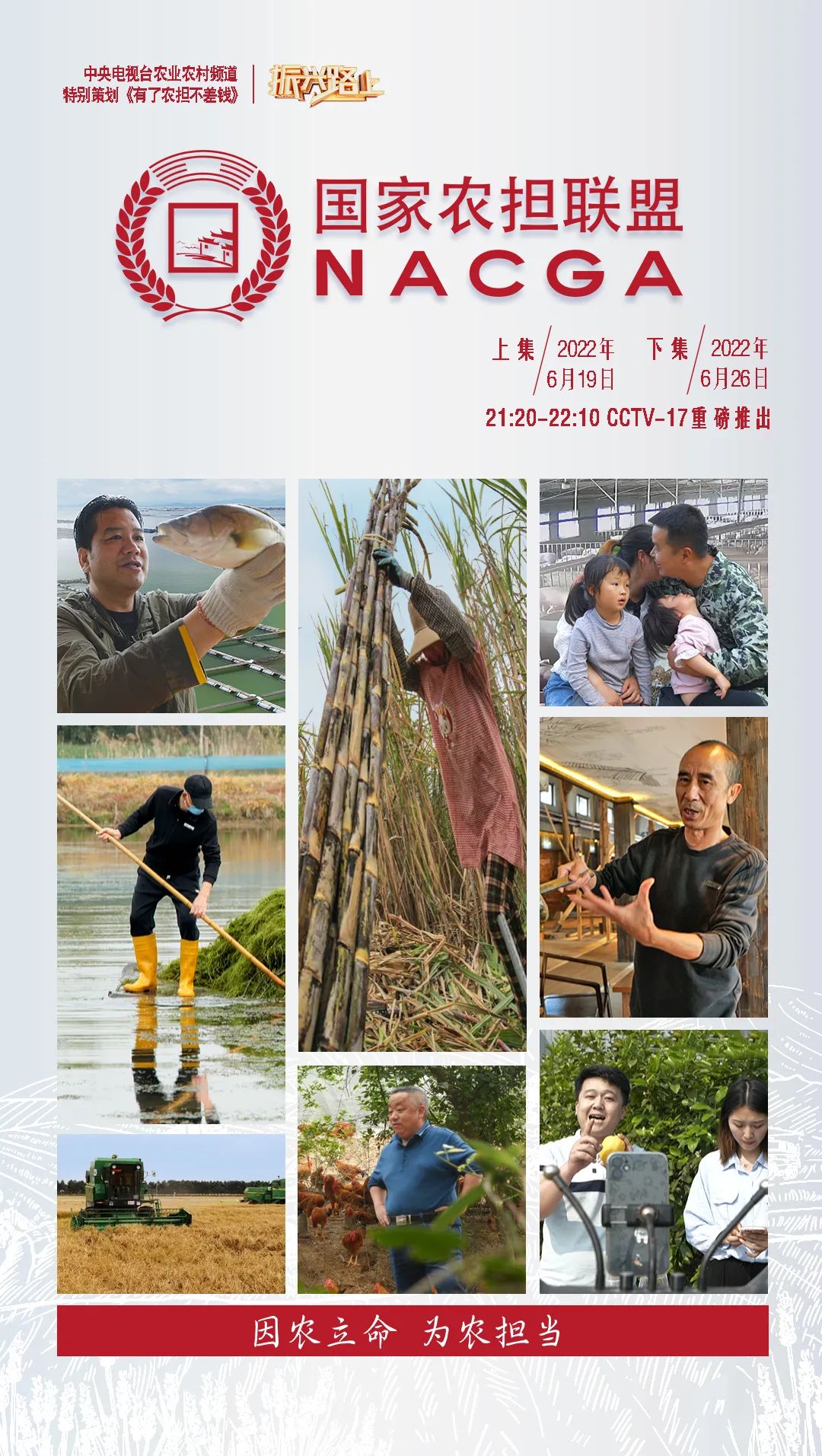 在農業(yè)農村部計劃財務司的指導下,由中央廣播電視總臺農業(yè)農村頻道(CCTV-17)大型全媒體欄目《振興路上》與國家農擔公司特別策劃《有了農擔不差錢》(上下集),歷經4個月精心策劃、跨越八省實地拍攝、后期剪輯與制作工作,現(xiàn)將分別于6月19日與6月26日21:20在CCTV-17農業(yè)農村頻道與央視頻同步播出,屆時將讓全國觀眾認識不一樣的農擔人、感受“兩腳泥、曬黑臉、睡地板”的農擔精神。