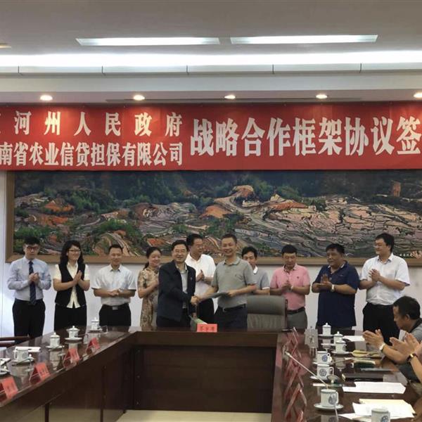 8月21日上午云南省農業(yè)信貸擔保有限公司與紅河州人民政府戰(zhàn)略合作協(xié)議簽訂暨公司紅河辦事處、彌勒辦事處授牌儀式在紅河州會堂正式舉行。