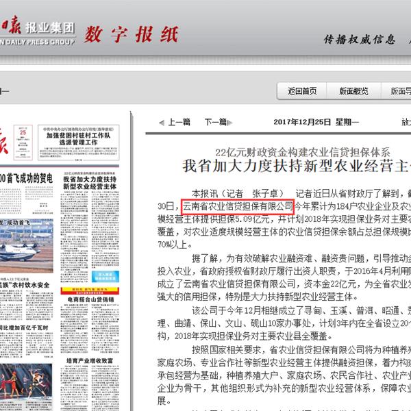 云南省加大力度扶持新型農(nóng)業(yè)經(jīng)營主體 22億元財政資金構(gòu)建農(nóng)業(yè)信貸擔(dān)保體系