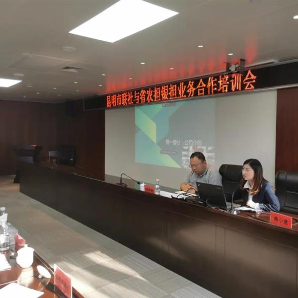 2020年11月18日,農(nóng)擔(dān)二部負(fù)責(zé)人張長(zhǎng)浩攜昆明業(yè)務(wù)團(tuán)隊(duì)到昆明市農(nóng)村信用合作聯(lián)社參加“昆明市聯(lián)社與省農(nóng)擔(dān)銀擔(dān)業(yè)務(wù)合作培訓(xùn)會(huì)”。
