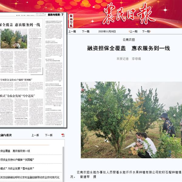 《農(nóng)民日?qǐng)?bào)》點(diǎn)贊云南農(nóng)擔(dān)惠農(nóng)服務(wù)見成效